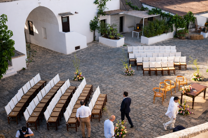 Potete celebrare il vostro giorno speciale a bordo piscina, nei giardini della masseria o nella cappella dei primi del ’900, a pochi passi dalle antiche mura.